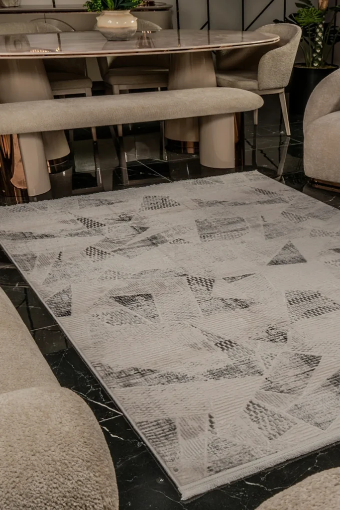 The Alin AL004 design traces its inspiration to Anatolia’s centuries‑old weaving journey, where rugs served as both art and archive. Its overall composition balances clarity and rhythm, echoing architectural motifs carried across caravan routes and coastal marketplaces. The chosen cream palette symbolizes calm and hospitality, hues historically favored to create serenity in family rooms and guest salons. Subtle pattern repetitions suggest continuity, a visual metaphor for the unbroken thread between past artisans and today’s makers. Geometric scaffolds introduce protection and order, while softened edges reveal a lived‑in warmth that suits contemporary life. This interplay of precision and softness is deliberate, aligning the design with modern interiors while preserving cultural depth. Within bedroom, the rug grounds furniture groupings, guiding movement and conversation like a quiet architectural plan. The texture projects comfort at first glance, then reveals fine detail that rewards a closer look under natural or evening light. Historical motifs are distilled rather than copied, honoring origin without nostalgia and keeping the piece confidently current. The design’s negative space is as meaningful as its line work, offering the eye a moment of rest akin to pauses in classical poetry. A restrained palette also heightens material integrity, letting the hand and sheen of Durable Synthetic Fibres speak with authenticity. Craft values are central here: dimensional stability, color fastness, and a surface engineered for daily resilience. The composition adapts across sizes without losing proportion, preserving focal rhythms in both intimate and generous floor plans. In multicultural homes, the piece bridges languages of decor—minimal, rustic, or luxe—without demanding attention. As a member of Kreasyon’s portfolio, Alin AL002 stands for longevity: visual calm today, timeless relevance tomorrow. It invites touch and use, proving that design heritage is not a museum relic but a living companion to everyday rituals. Over time, the rug becomes a familiar landmark at home—soft underfoot, reliably handsome, and quietly meaningful.