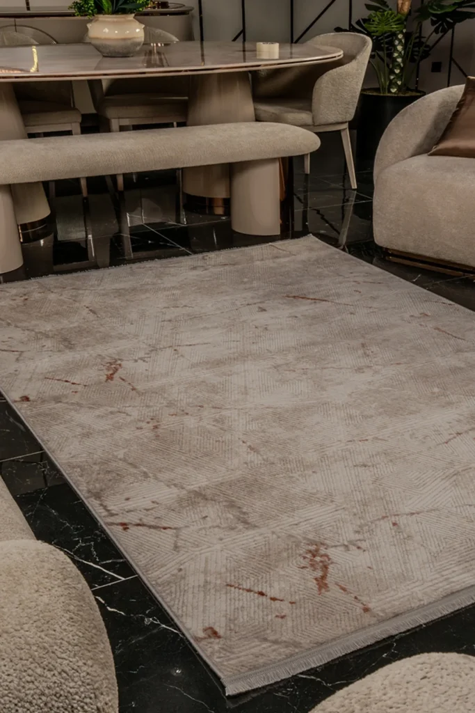 The Alin AL005design traces its inspiration to Anatolia’s centuries‑old weaving journey, where rugs served as both art and archive. Its overall composition balances clarity and rhythm, echoing architectural motifs carried across caravan routes and coastal marketplaces. The chosen cream palette symbolizes calm and hospitality, hues historically favored to create serenity in family rooms and guest salons. Subtle pattern repetitions suggest continuity, a visual metaphor for the unbroken thread between past artisans and today’s makers. Geometric scaffolds introduce protection and order, while softened edges reveal a lived‑in warmth that suits contemporary life. This interplay of precision and softness is deliberate, aligning the design with modern interiors while preserving cultural depth. Within bedroom, the rug grounds furniture groupings, guiding movement and conversation like a quiet architectural plan. The texture projects comfort at first glance, then reveals fine detail that rewards a closer look under natural or evening light. Historical motifs are distilled rather than copied, honoring origin without nostalgia and keeping the piece confidently current. The design’s negative space is as meaningful as its line work, offering the eye a moment of rest akin to pauses in classical poetry. A restrained palette also heightens material integrity, letting the hand and sheen of Durable Synthetic Fibres speak with authenticity. Craft values are central here: dimensional stability, color fastness, and a surface engineered for daily resilience. The composition adapts across sizes without losing proportion, preserving focal rhythms in both intimate and generous floor plans. In multicultural homes, the piece bridges languages of decor—minimal, rustic, or luxe—without demanding attention. As a member of Kreasyon’s portfolio, Alin AL002 stands for longevity: visual calm today, timeless relevance tomorrow. It invites touch and use, proving that design heritage is not a museum relic but a living companion to everyday rituals. Over time, the rug becomes a familiar landmark at home—soft underfoot, reliably handsome, and quietly meaningful.