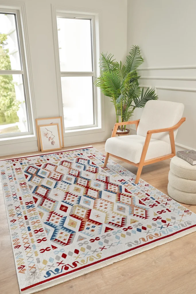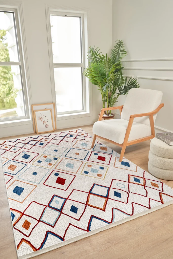 The Colorium CO003 design traces its inspiration to Anatolia’s centuries‑old weaving journey, where rugs served as both art and archive. Its overall composition balances clarity and rhythm, echoing architectural motifs carried across caravan routes and coastal marketplaces. The chosen multicolor palette symbolizes calm and hospitality, hues historically favored to create serenity in family rooms and guest salons. Subtle pattern repetitions suggest continuity, a visual metaphor for the unbroken thread between past artisans and today’s makers. Geometric scaffolds introduce protection and order, while softened edges reveal a lived‑in warmth that suits contemporary life. This interplay of precision and softness is deliberate, aligning the design with modern interiors while preserving cultural depth. Within bedroom, the rug grounds furniture groupings, guiding movement and conversation like a quiet architectural plan. The texture projects comfort at first glance, then reveals fine detail that rewards a closer look under natural or evening light. Historical motifs are distilled rather than copied, honoring origin without nostalgia and keeping the piece confidently current. The design’s negative space is as meaningful as its line work, offering the eye a moment of rest akin to pauses in classical poetry. A restrained palette also heightens material integrity, letting the hand and sheen of Durable Synthetic Fibres speak with authenticity. Craft values are central here: dimensional stability, color fastness, and a surface engineered for daily resilience. The composition adapts across sizes without losing proportion, preserving focal rhythms in both intimate and generous floor plans. In multicultural homes, the piece bridges languages of decor—minimal, rustic, or luxe—without demanding attention. As a member of Kreasyon’s portfolio, Colorium CO001 stands for longevity: visual calm today, timeless relevance tomorrow. It invites touch and use, proving that design heritage is not a museum relic but a living companion to everyday rituals. Over time, the rug becomes a familiar landmark at home—soft underfoot, reliably handsome, and quietly meaningful.