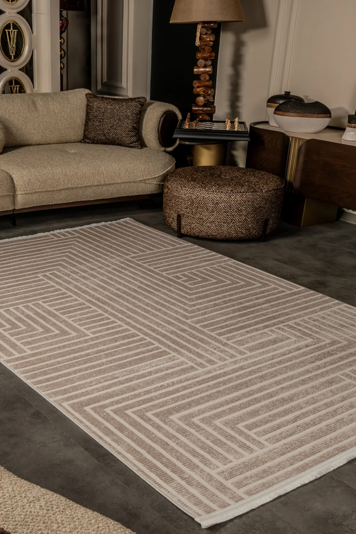 The Cunda CN016 design traces its inspiration to Anatolia’s centuries‑old weaving journey, where rugs served as both art and archive. Its overall composition balances clarity and rhythm, echoing architectural motifs carried across caravan routes and coastal marketplaces. The chosen beige palette symbolizes calm and hospitality, hues historically favored to create serenity in family rooms and guest salons. Subtle pattern repetitions suggest continuity, a visual metaphor for the unbroken thread between past artisans and today’s makers. Geometric scaffolds introduce protection and order, while softened edges reveal a lived‑in warmth that suits contemporary life. This interplay of precision and softness is deliberate, aligning the design with modern interiors while preserving cultural depth. Within living room, the rug grounds furniture groupings, guiding movement and conversation like a quiet architectural plan. The texture projects comfort at first glance, then reveals fine detail that rewards a closer look under natural or evening light. Historical motifs are distilled rather than copied, honoring origin without nostalgia and keeping the piece confidently current. The design’s negative space is as meaningful as its line work, offering the eye a moment of rest akin to pauses in classical poetry. A restrained palette also heightens material integrity, letting the hand and sheen of Durable Synthetic Fibres speak with authenticity. Craft values are central here: dimensional stability, color fastness, and a surface engineered for daily resilience. The composition adapts across sizes without losing proportion, preserving focal rhythms in both intimate and generous floor plans. In multicultural homes, the piece bridges languages of decor—minimal, rustic, or luxe—without demanding attention. As a member of Kreasyon’s portfolio, Cunda CN001 stands for longevity: visual calm today, timeless relevance tomorrow. It invites touch and use, proving that design heritage is not a museum relic but a living companion to everyday rituals. Over time, the rug becomes a familiar landmark at home—soft underfoot, reliably handsome, and quietly meaningful.